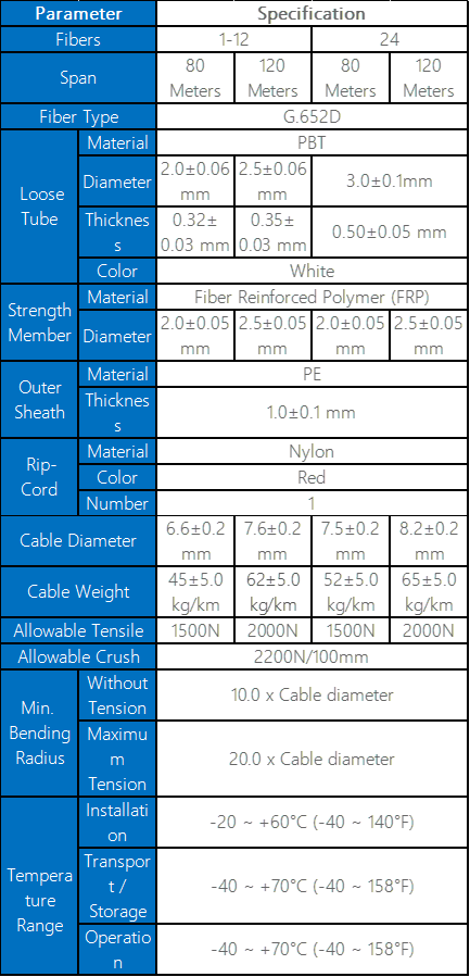G.652D Aerial Self-Supported ASU Fiber Optic Cable has a loose tube structure and water-resistant gel compound to provide crucial protection for the fiber. Over the tube, water-blocking material is ap
